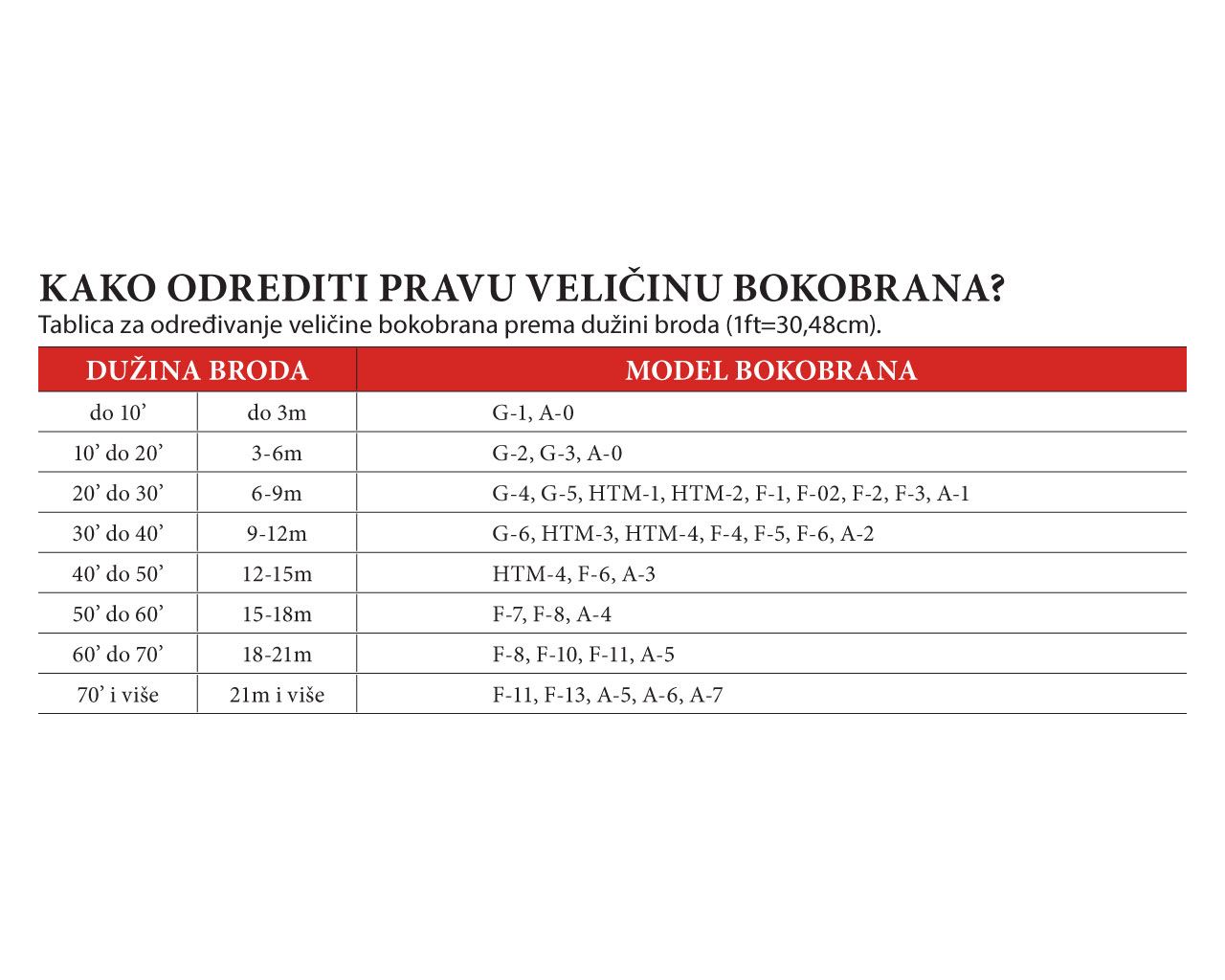 Cilindrični bokobrani F-serije nude se u 12 različitih veličina za plovila u rasponu od najmanjih gumenjaka do komercijalnih brodova i plovila mornarice.