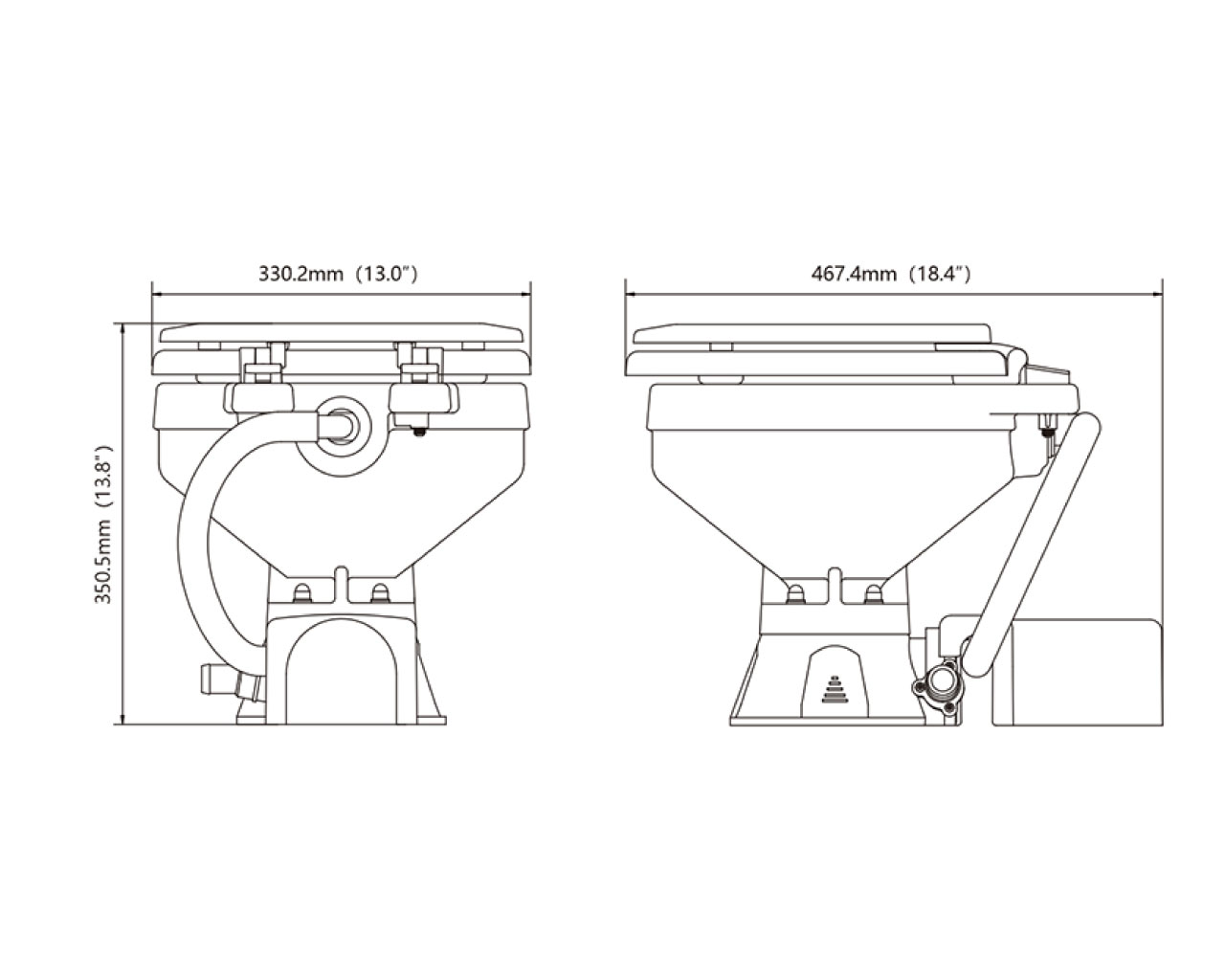 Dvostruka funkcija pumpe eliminira potrebu za ručnim pumpama i ventilima za suhu školjku. Pritiskom na gumb, samousisna pumpa ispire školjku dok macerator i pumpa za pročišćavanje velikog kapaciteta melju otpad i ispumpavaju ga. Uključuje izdržljivi gumb i adapter za crijevo za pražnjenje od 1" do 1-1/2". Porculanska zdjela jednostavna za čišćenje.