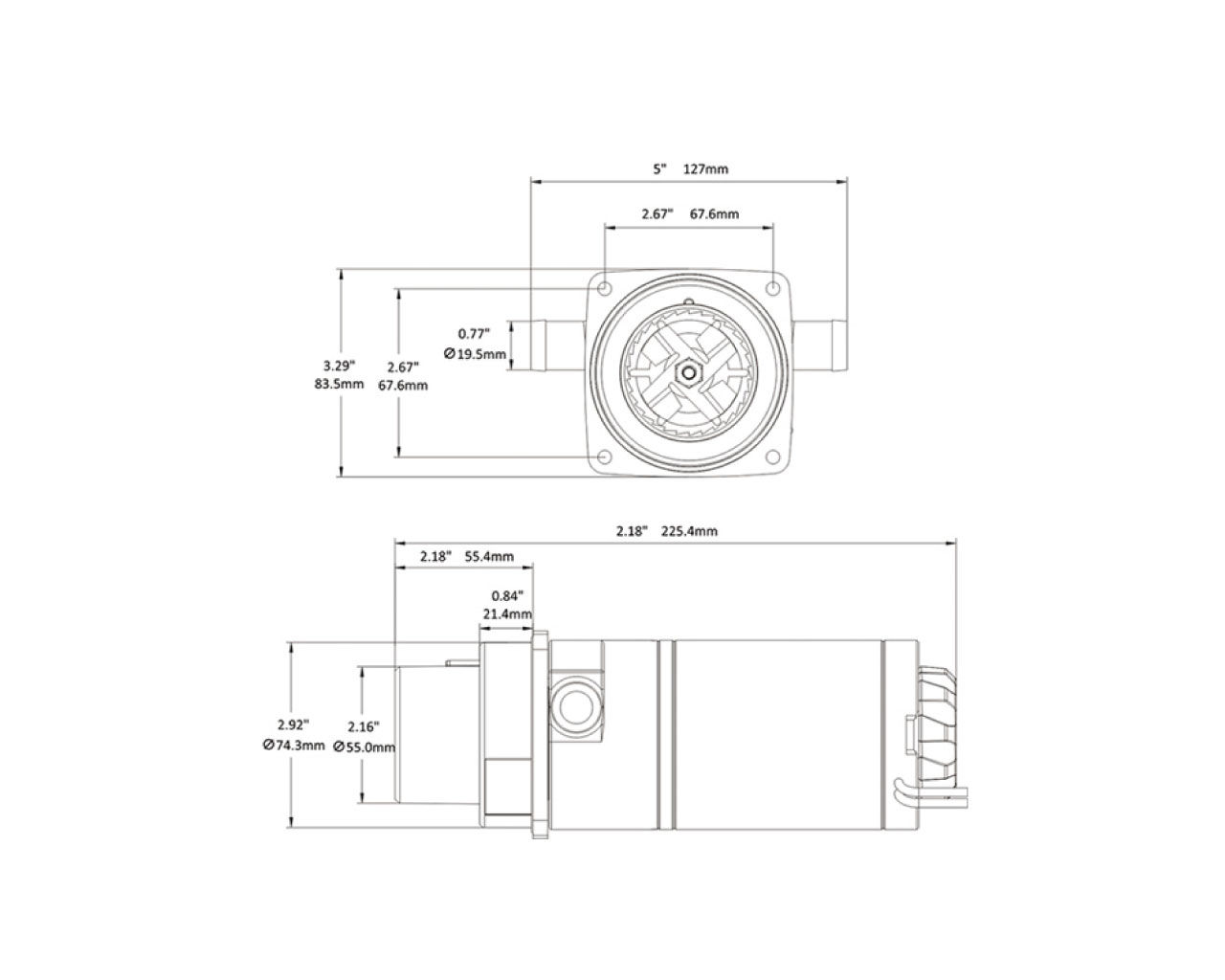 Dvostruka funkcija pumpe eliminira potrebu za ručnim pumpama i ventilima za suhu školjku. Pritiskom na gumb, samousisna pumpa ispire školjku dok macerator i pumpa za pročišćavanje velikog kapaciteta melju otpad i ispumpavaju ga.