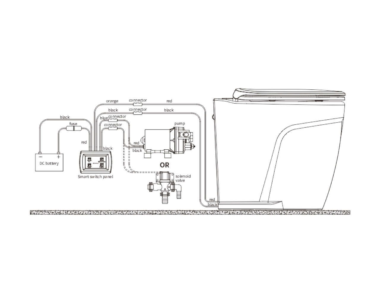 Nova višenamjenska upravljačka ploča za brodske WC-e. Posebno za Deluxe Flush Marine WC-e. Može se koristiti s Deluxe Flush i Quiet Flush brodskim WC-ima. Ima 4 pametne dodirne kontrole: "Punjenje", "Brzo ispiranje", "Ispiranje" i "Praznjenje".
