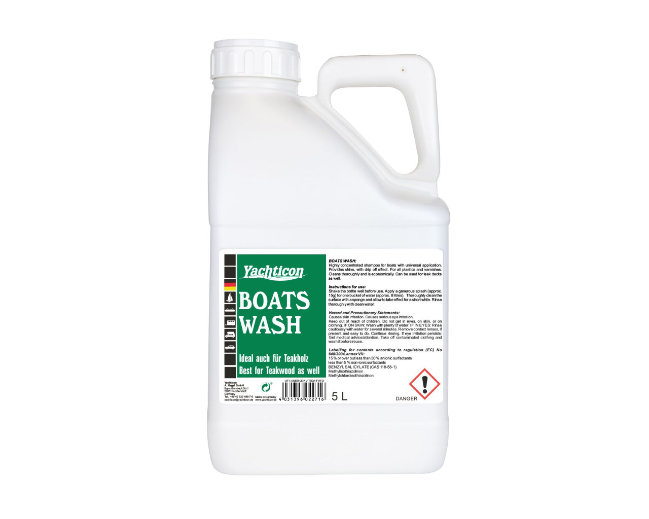 Visokokoncentriran i efikasan šampon za čamce, pogodan za sve materijale, čisti temeljito, jako štedljiv u upotrebi, pogodan i za čišćenje paluba od tikovine, za svakodnevnu njegu palube. Može se upotrijebiti i s morskom vodom.